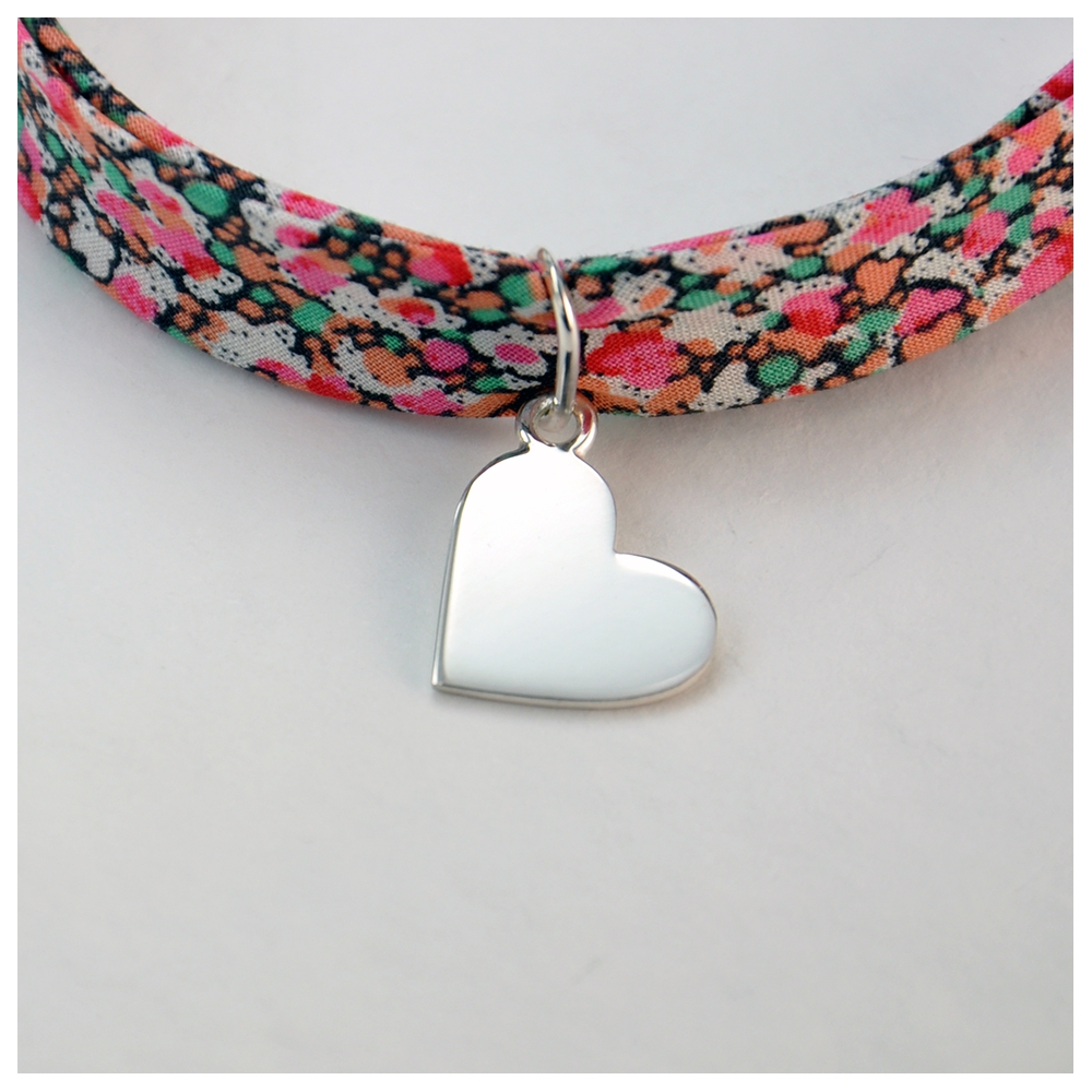 Charms Coeur à graver en argent 925, amovible, monté sur bracelet Liberty à boucle deux anneaux, embout et estampille argent 925.